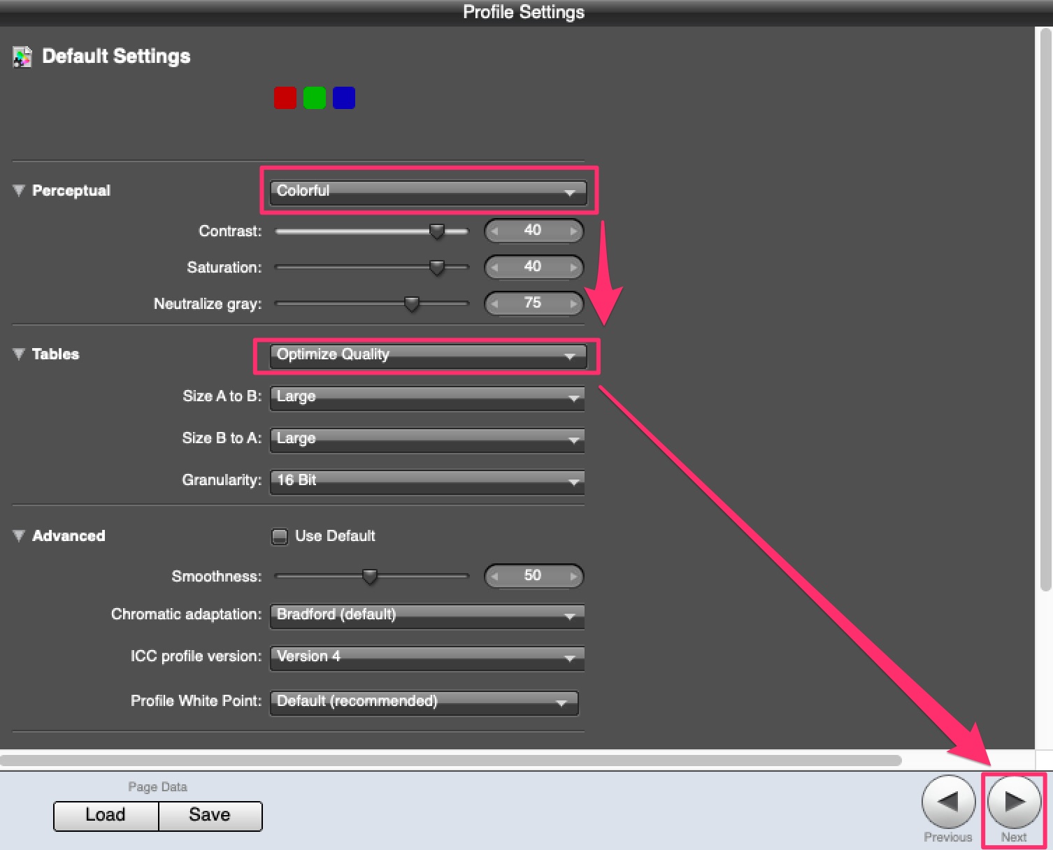 풍부한 컬러를 위해 아래와 같이 설정한다.