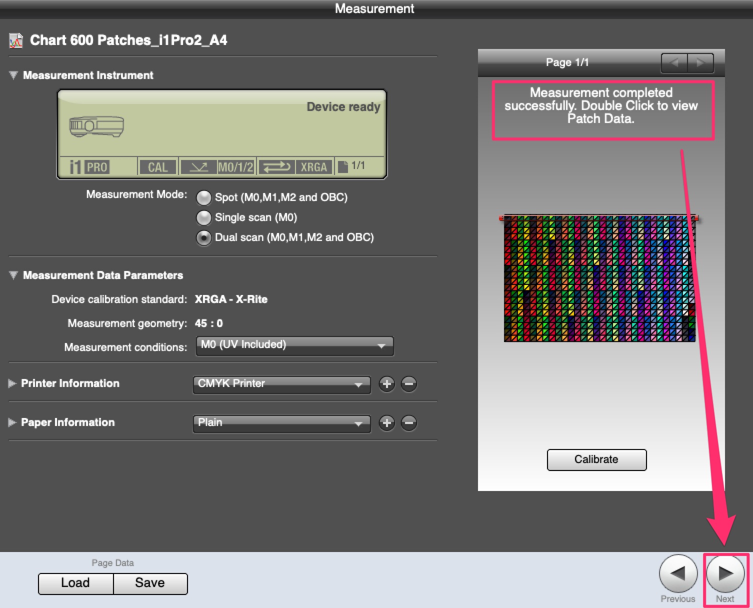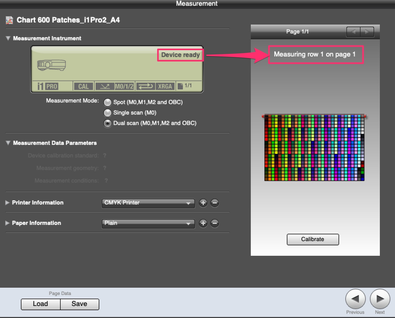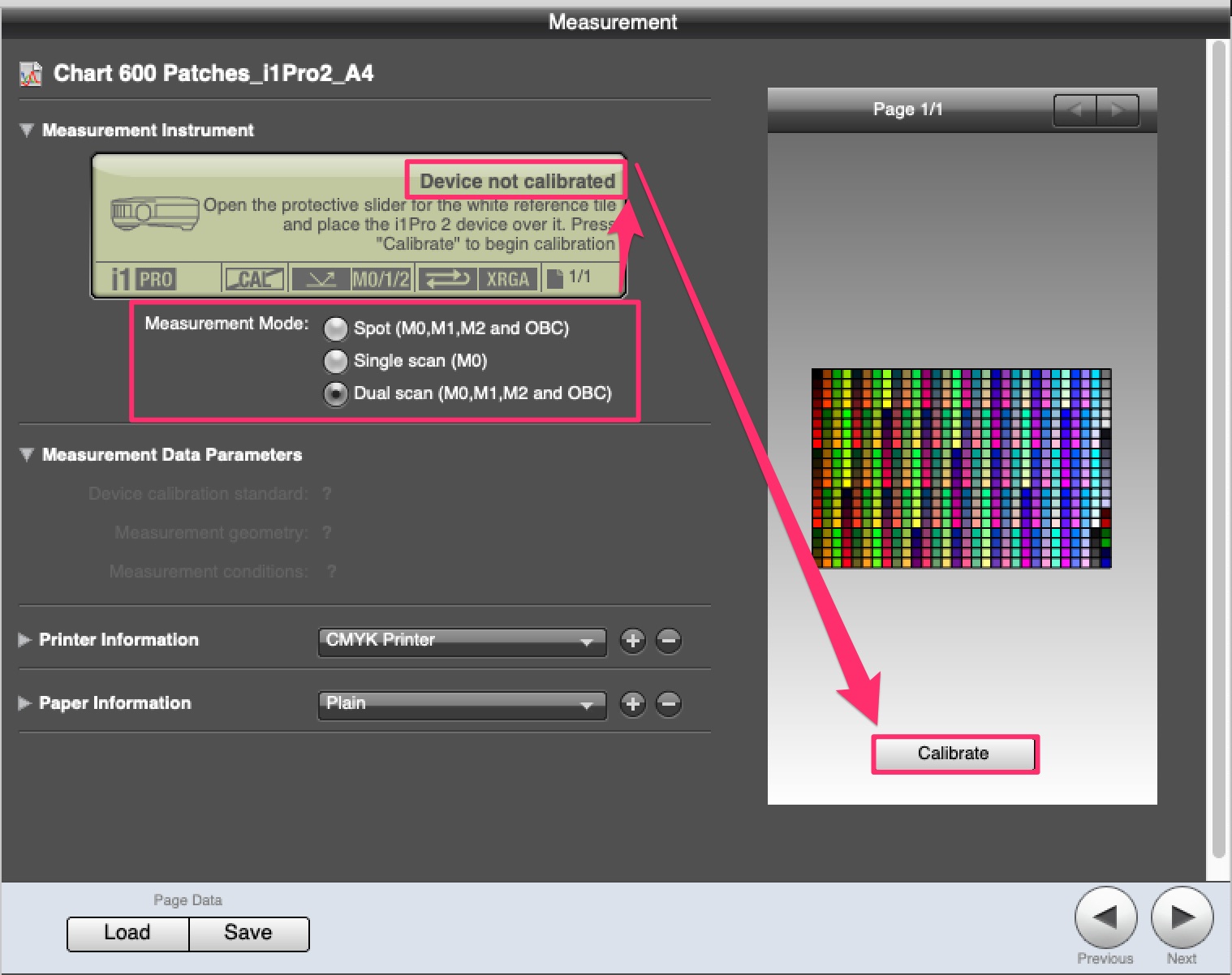 현재의 셋팅(패치수, 측정장비, 페이지 크기 등이 포함됨)을