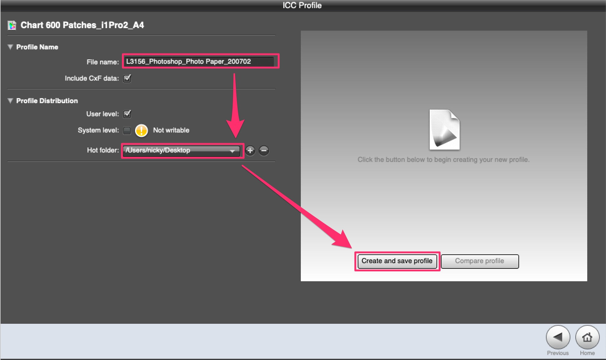 사진과 같이 프로그램에서 자동으로 ICC프로파일을 생성한다.